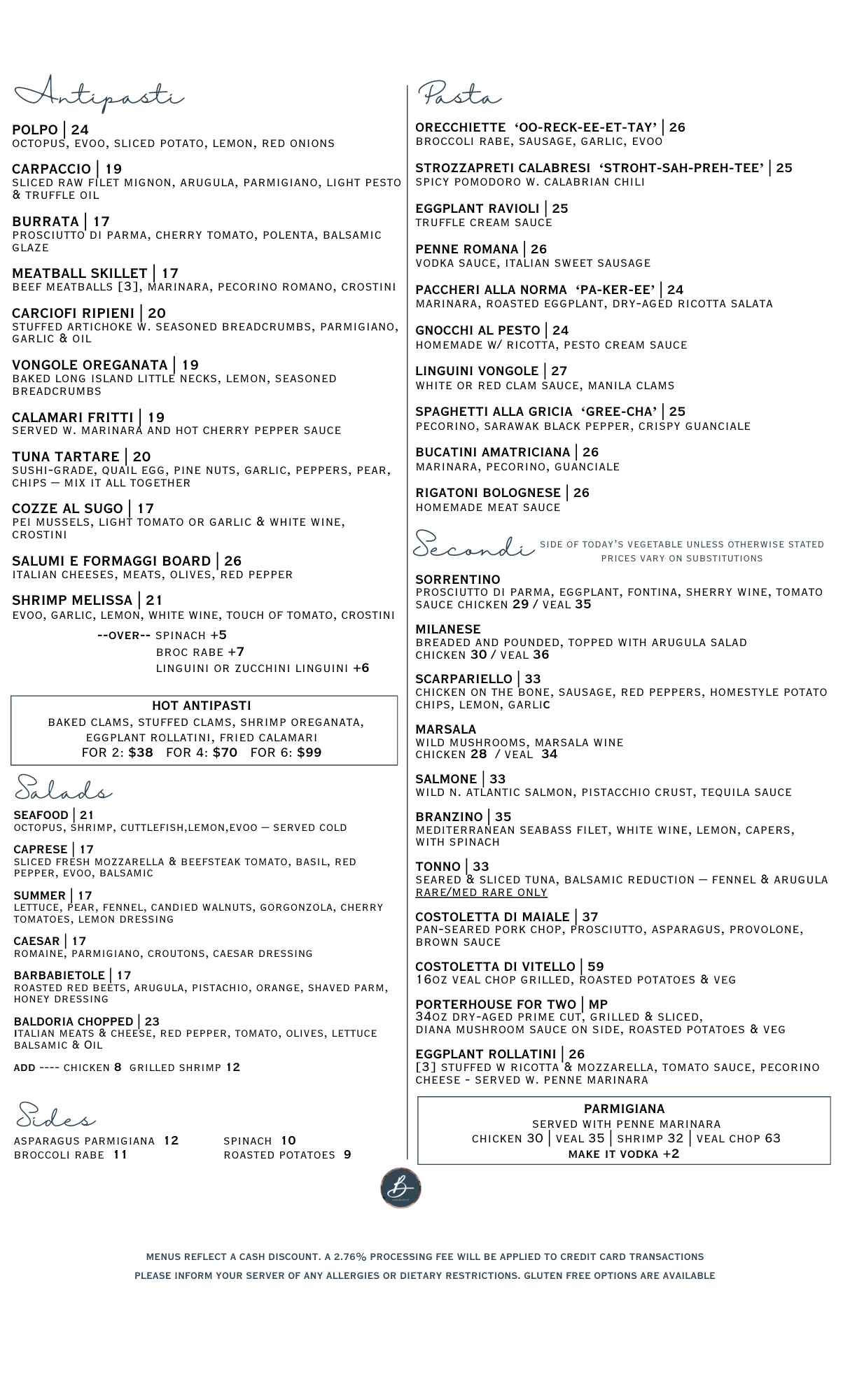 Baked & stuffed clams, shrimp, eggplant rollatini, fried calamari